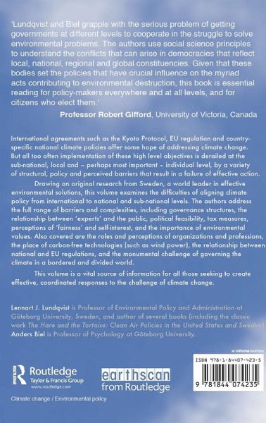 International agreements such as the Kyoto Protocol, EU regulation and country-specific national climate policies offer some hope of addressing climate change. But all too often implementation of these high level objectives is derailed at the sub-national, local and - perhaps most important - individual level, by a variety of structural, policy and perceived barriers that result in a failure of effective action. Drawing on original research from Sweden, a world leader in effective environmental solutions, this volume examines the difficulties of aligning climate policy from international to national and sub-national levels. The authors address the full range of barriers and complexities, including governance structures, the relationship between 'experts' and the public, political feasibility, tax measures, perceptions of 'fairness' and self-interest, and the importance of environmental values. Also covered are the roles and perceptions of organizations and professions, the place of carbon-free technologies (such as wind power), the relationship between national and EU regulations, and the monumental challenge of governing the climate in a bordered and divided world. This volume is a vital source of information for all those seeking to create effective, coordinated responses to the challenge of climate change.