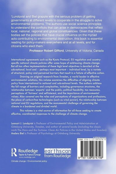 International agreements such as the Kyoto Protocol, EU regulation and country-specific national climate policies offer some hope of addressing climate change. But all too often implementation of these high level objectives is derailed at the sub-national, local and - perhaps most important - individual level, by a variety of structural, policy and perceived barriers that result in a failure of effective action. Drawing on original research from Sweden, a world leader in effective environmental solutions, this volume examines the difficulties of aligning climate policy from international to national and sub-national levels. The authors address the full range of barriers and complexities, including governance structures, the relationship between 'experts' and the public, political feasibility, tax measures, perceptions of 'fairness' and self-interest, and the importance of environmental values. Also covered are the roles and perceptions of organizations and professions, the place of carbon-free technologies (such as wind power), the relationship between national and EU regulations, and the monumental challenge of governing the climate in a bordered and divided world. This volume is a vital source of information for all those seeking to create effective, coordinated responses to the challenge of climate change.