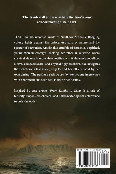 1653 - In the untamed wilds of Southern Africa, a fledgling colony fights against the unforgiving grip of nature and the specter of starvation. Amidst this crucible of hardship, a spirited, young woman emerges, seeking her place in a world where survival demands more than resilience - it demands rebellion. Brave, compassionate, and unyieldingly stubborn, she navigates the treacherous landscape, only to find herself ensnared by her own daring. The perilous path woven by her actions intertwines with heartbreak and sacrifice, molding her destiny. Inspired by true events, From Lambs to Lions is a tale of tenacity, impossible choices, and unbreakable spirits determined to defy the odds.