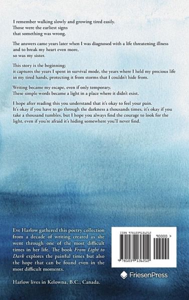 I remember walking slowly and growing tired easily. Those were the earliest signs that something was wrong. The answers came years later when I was diagnosed with a life threatening illness and to break my heart even more, so was my sister. This story is the beginning; it captures the years I spent in survival mode, the years where I held my precious life in my tired hands, protecting it from storms that I couldn't hide from. Writing became my escape, even if only temporary. These simple words became a light in a place where it didn't exist. I hope after reading this you understand that it's okay to feel your pain. It's okay if you have to go through the darkness a thousands times, it's okay if you take a thousand tumbles, but I hope you always find the courage to look for the light, even if you're afraid it's hiding somewhere you'll never find.