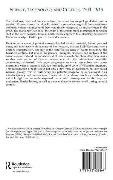 The Nördlinger Ries and Steinheim Basin, two conspicuous geological structures in southern Germany, were traditionally viewed as somewhat enigmatic but nevertheless definitely volcanic edifices until they were finally recognized as impact craters in the 1960s. The changing views about the origin of the craters mark an important paradigm shift in the Earth sciences, from an Earth-centric approach to a planetary perspective that acknowledged Earth's place in the wider cosmos. Drawing on a range of printed sources, detailed archival material, letters, personal notes, and interviews with veterans of Ries research, Martina Kölbl-Ebert provides a detailed reconstruction, not only of the historical sequence of events throughout the twentieth century, but also of the personal thoughts, emotions and motives of the scientists involved and the social context of their research. She shows that there was a sudden reconnection of German researchers with the international scientific community, particularly with more progressive American researchers, after some twenty-five years of scientific isolation during the build-up to WWII and its aftermath. This reconnection brought about not only a new view of geoscience, but also saved German geology from self-sufficiency and patriotic arrogance by integrating it in an interdisciplinary and international framework. In so doing this book sheds much valuable light on an under-explored but crucial development in the way we understand Earth's history, as well as the way that science functioned during times of conflict.