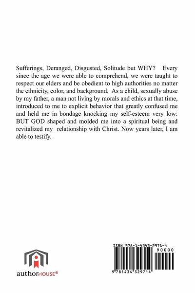 Sufferings, Deranged, Disgusted, Solitude but WHY? Every since the age we were able to comprehend, we were taught to respect our elders and be obedient to high authorities no matter the ethnicity, color, and background. As a child, sexually abuse by my father, a man not living by morals and ethics at that time, introduced to me to explicit behavior that greatly confused me and held me in bondage knocking my self-esteem very low: BUT GOD shaped and molded me into a spiritual being and revitalized my relationship with Christ. Now years later, I am able to testify.