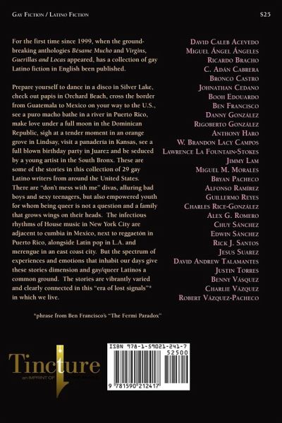 Prepare yourself to dance in a disco in Silver Lake, check out papis in Orchard Beach, cross the border from Guatemala to Mexico on your way to the U.S., see a puro macho bathe in a river in Puerto Rico, make love under a full moon in the Dominican Republic, sigh at a tender moment in an orange grove in Lindsay, visit a panaderia in Kansas, see a full blown birthday party in Juarez, and be seduced by a young artist in the South Bronx. These are some of the stories in this collection of thirty gay Latino writers from around the United States. There are "don't mess with me" divas, alluring bad boys, and sexy teenagers, but also empowered youth for whom being queer is not a question and a family that grows wings on their heads. The infectious rhythms of House music in New York City are adjacent to cumbia in Mexico, next to reggaeton in Puerto Rico, alongside Latin pop in L.A. and merengue in an east coast city. But the spectrum of experiences and emotions that inhabit our days gives these stories dimension and gay/queer Latinos a common ground. The stories are vibrantly varied and clearly connected in this "era of lost signals" in which we live.
