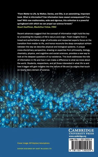 1. Introduction Sara Imari Walker, Paul C. W. Davies and F. R. Ellis; Part I. Physics and Life: 2. The 'hard problem' of life Sara Imari Walker and Paul C. W. Davies; 3. Beyond initial conditions and laws of motion: constructor theory of information and life Chiara Marletto; Part II. Bio from Bit: 4. (How) did information emerge? Anne-Marie Grisogono; 5. On the emerging codes for chemical evolution Jillian E. Smith-Carpenter, Sha Li, Jay T. Goodwin, Anil K. Mehta and David G. Lynn; 6. Digital and analogue information in organisms Denis Noble; 7. From entropy to information: biased typewriters and the origin of life Christoph Adami and Thomas Labar; Part III. Life's Hidden Information: 8. Cryptographic nature David Krakauer; 9. Noise and function Steven Weinstein and Theodore Pavlic; 10. The many faces of state space compression David Wolpert, Eric Libby, Joshua Grochow and Simon DeDeo; 11. Causality, information and biological computation: an algorithmic software approach to life, disease and the immune system Hector Zenil, Angelika Schmidt and Jesper Tegnér; Part IV. Complexity and Causality: 12. Life's information hierarchy Jessica Flack; 13. Living through downward causation: from molecules to ecosystems Keith D. Farnsworth, George F. R. Ellis and Luc Jaeger; 14. Automata and animats: from dynamics to cause-effect structures Larissa Albantakis and Giulio Tononi; 15. Biological information, causality and specificity - an intimate relationship Karola Stotz and Paul Griffiths; Part V. From Matter to Mind: 16. Major transitions in political order Simon DeDeo; 17. Bits from biology for computational intelligence Michael Wibral, Joseph Lizier and Viola Priesemann; 18. Machine learning and the questions it raises G. Andrew D. Briggs and Dawid Potgieter.