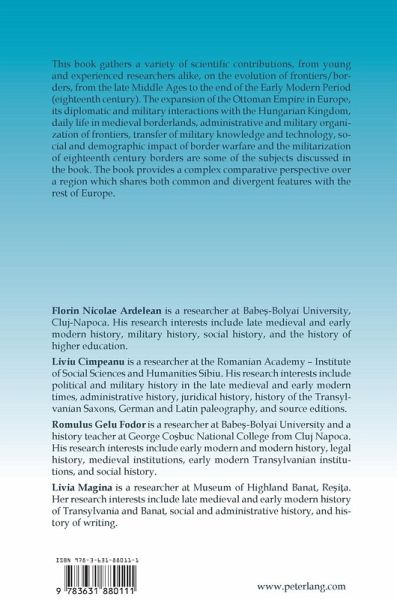This volume gathers a variety of scientific contributions, from young and experienced researchers alike, on the evolution of frontiers/borders, from the late Middle Ages to the end of the Early Modern Period (eighteenth century). The expansion of the Ottoman Empire in Europe, its diplomatic and military interactions with the Hungarian Kingdom, daily life in medieval borderlands, administrative and military organization of frontiers, transfer of military knowledge and technology, social and demographic impact of border warfare and the militarization of eighteenth century borders are some of the subjects approached by the authors. Their research provides a complex comparative perspective over a region which shares both common and divergent features with the rest of Europe.