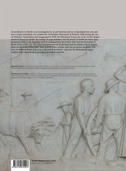 For the first time, the 92-metre frieze of the Voortrekker Monument in Pretoria, one of the largest historical narratives in marble, has been made the subject of a book. The pictorial narrative of the Boer pioneers who conquered South Africa's interior during the 'Great Trek' (1835-52) represents a crucial period of South Africa's past. Conceptualising the frieze both reflected on and contributed to the country's socio-political debates in the 1930s and 1940s when it was made. The book considers the active role the Monument played in the rise of Afrikaner nationalism and the development of apartheid, as well as its place in post-apartheid heritage.