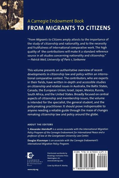 Citizenship policies are changing rapidly in the face of global migration trends and the inevitable ethnic and racial diversity that follows. The debates are fierce. What should the requirements of citizenship be? How can multi-ethnic states forge a collective identity around a common set of values, beliefs and practices? What are appropriate criteria for admission and rights and duties of citizens? This book includes nine case studies that investigate immigration and citizenship in Australia, the Baltic States, Canada, the European Union, Israel, Mexico, Russia, South Africa and the United States. This complete collection of essays scrutinizes the concrete rules and policies by which states administer citizenship, and highlights similarities and differences in their policies. From Migrants to Citizens, the only comprehensive guide to citizenship policies in these liberal-democratic and emerging states, will be an invaluable reference for scholars in law, political science, and citizenship theory. Policymakers and government officials involved in managing citizenship policy in the United States and abroad will find this an excellent, accessible overview of the critical dilemmas that multi-ethnic societies face as a result of migration and global interdependencies at the end of the twentieth century.