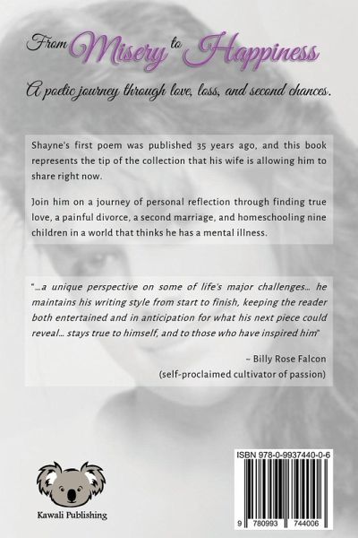 Shayne's first poem was published 35 years ago, and this book represents the tip of the collection that his wife is allowing him to share right now. Join him on a journey of personal reflection through finding true love, a painful divorce, a second marriage, and homeschooling nine children in a world that thinks he has a mental illness.