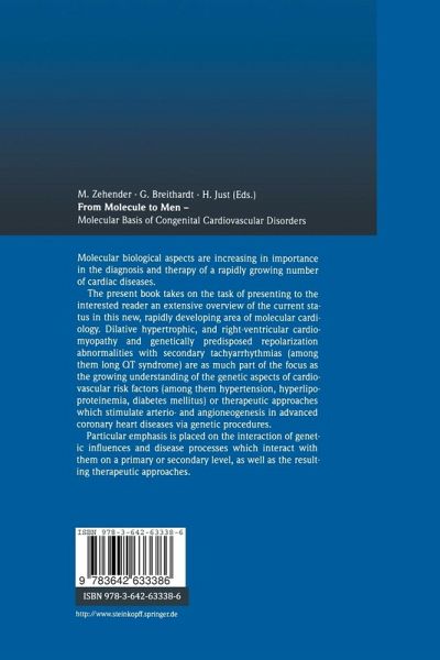 From molecule to man: Medical research has indeed taken this direction, and major improvements of our understanding of the pathophysiology and epidemiology of disease have been achieved. The molecular basis of the congenital cardiovascular disorders has been extended from relatively few congenital malformations into everyday illnesses such as diabetes mellitus, hyperlipoproteinaemea, and arterial hypertension. The monogenic and, more difficult, polygenic basis for a vast majority of cardiovascular disorders are being defined more precisely from year to year. This book gives an overview of what has been achieved so far and defines the current position.