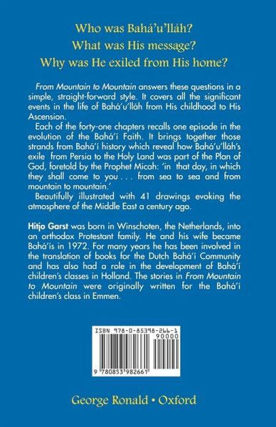 Here is a book which young people will find a valuable addition to their Bahá'í libraries. From Mountain to Mountain: Stories about Bahá'u'lláh relates the history of the Bahá'í Faith from the childhood of the Báb to the Ascension of Bahá'u'lláh. Written in a simple style and suitable for use in children's classes, the book covers all the significant events in the life of Bahá'u'lláh. Each of the forty-one chapters recalls one episode in the evolution of the Bahá'í Faith, and well-known figures such as Mullá Husayn, Vahíd and Badí' are introduced. The book brings together those strands from Bahá'í history which reveal how Bahá'u'lláh's exile from Persia to the Holy Land was part of the Plan of God, foretold by the Prophet Micah: 'in that day, in which they shall come to you . . . from sea to sea and from mountain to mountain.'