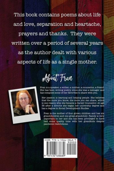 This book contains poems about life and love, separation and heartache, prayers and thanks. They were written over a period of several years as the author dealt with various aspects of life as a single mother.