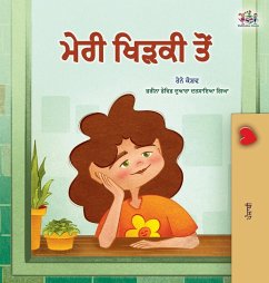 Punjabi children's book. Perfect for kids practicing their Punjabi language skills. While staying at home sick, a young girl discovers magic and stories in the simple scenes outside her window. From unexpected laughter to dances in the rain, each moment sparks her imagination and curiosity, showing how everyday moments can be full of wonder.