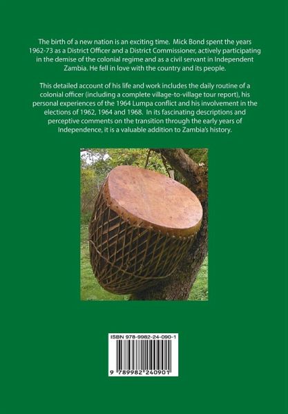The birth of a new nation is an exciting time. Mick Bond spent the years 1962-73 as a District Officer and a District Commissioner, actively participating in the demise of the colonial regime and then as a civil servant in independent Zambia. This detailed account of his life and work includes the daily routine of a colonial officer, his personal experiences of the 1964 Lumpa conflict and his involvement in the elections of 1962, 1964, and 1968.