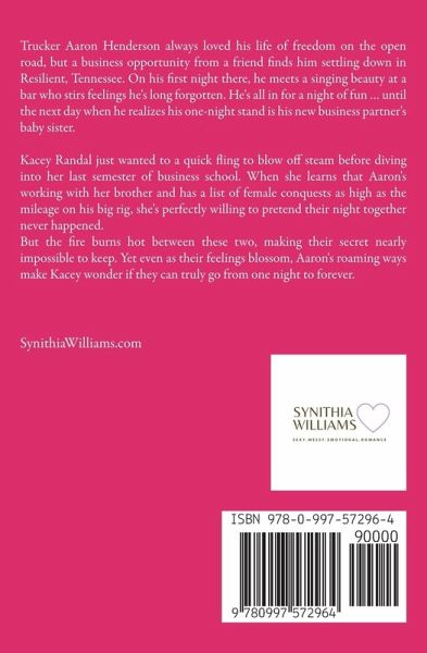 Trucker Aaron Henderson always loved his life of freedom on the open road, but a business opportunity from a friend finds him settling down in Resilient, Tennessee. On his first night there, he meets a singing beauty at a bar who stirs feelings he's long forgotten. He's all in for a night of fun ... until the next day when he realizes his one-night stand is his new business partner's baby sister. Kacey Randal just wanted to a quick fling to blow off steam before diving into her last semester of business school. When she learns that Aaron's working with her brother and has a list of female conquests as high as the mileage on his big rig, she's perfectly willing to pretend their night together never happened. But the fire burns hot between these two, making their secret nearly impossible to keep. Yet even as their feelings blossom, Aaron's roaming ways make Kacey wonder if they can truly go from one night to forever.