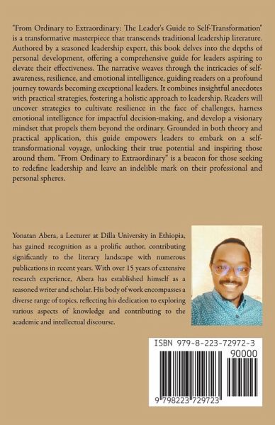 "From Ordinary to Extraordinary: The Leader's Guide to Self-Transformation" is a transformative masterpiece that transcends traditional leadership literature. Authored by a seasoned leadership expert, this book delves into the depths of personal development, offering a comprehensive guide for leaders aspiring to elevate their effectiveness. The narrative weaves through the intricacies of self-awareness, resilience, and emotional intelligence, guiding readers on a profound journey towards becoming exceptional leaders. It combines insightful anecdotes with practical strategies, fostering a holistic approach to leadership. Readers will uncover strategies to cultivate resilience in the face of challenges, harness emotional intelligence for impactful decision-making, and develop a visionary mindset that propels them beyond the ordinary. Grounded in both theory and practical application, this guide empowers leaders to embark on a self-transformational voyage, unlocking their true potential and inspiring those around them. "From Ordinary to Extraordinary" is a beacon for those seeking to redefine leadership and leave an indelible mark on their professional and personal spheres.
