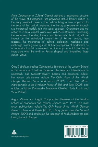 From Orientalism to Cultural Capital presents a fascinating account of the wave of Russophilia that pervaded British literary culture in the early twentieth century. The authors bring a new approach to the study of this period, exploring the literary phenomenon through two theoretical models from the social sciences: Orientalism and the notion of «cultural capital» associated with Pierre Bourdieu. Examining the responses of leading literary practitioners who had a significant impact on the institutional transmission of Russian culture, they reassess the mechanics of cultural dialogism, mediation and exchange, casting new light on British perceptions of modernism as a transcultural artistic movement and the ways in which the literary interaction with the myth of Russia shaped and intensified these cultural views.