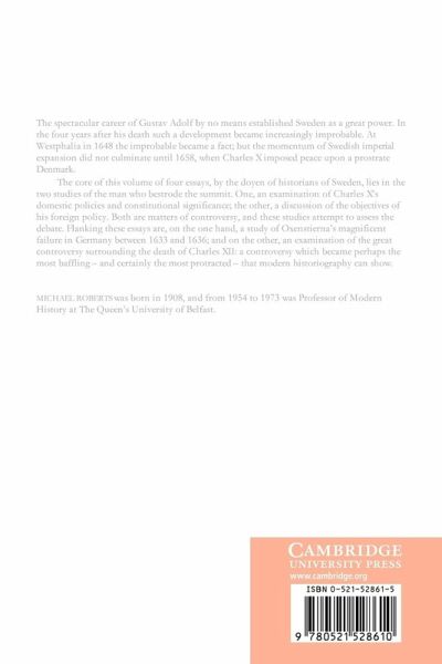 The spectacular career of Gustav Adolf by no means established Sweden as a great power. In the four years after his death such a development became increasingly improbable. At Westphalia in 1648 the improbable became a fact; but the momentum of Swedish imperial expansion did not culminate until 1658, when Charles X imposed peace upon a prostrate Denmark. The core of this volume of four essays, by the doyen of historians of Sweden, lies in the two studies of the man who bestrode the summit. One, an examination (if Charles X's domestic policies and constitutional significance; the other, a discussion of the objectives of his foreign policy. Both are matters of controversy, and these studies attempt to assess the debate. Flanking these essays are a study of Oxenstierna's magnificent failure in Germany between 1633 and 1636, and an examination of the great controversy surrounding the death of Charles XII.