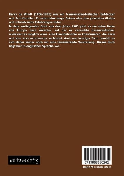 Harry de Windt (1856-1933) war ein französische-britischer Entdecker und Schriftsteller. Er unternahm lange Reisen über den gesamten Globus und schrieb seine Erfahrungen nider. In dem vorliegenden Buch aus dem Jahre 1903 geht es um seine Reise von Europa nach Amerika, auf der er versuchte herauszufinden, inwieweit es möglich wäre, eine Eisenbahnlinie zu konstruieren, die Paris und New York miteinander verbindet. Auch aus heutiger Sicht handelt es sich dabei immer noch um eine faszinierende Vorstellung. Dieses Buch liegt hier in englischer Sprache vor.