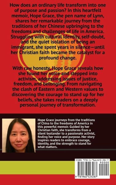 What does it take to transform silence into action, passivity into passion, and faith into courage? In this deeply personal and inspiring memoir, Hope Grace, the pen name of Lynn, chronicles her journey from the bustling streets of China to the heart of America, where she discovered her voice as an advocate for freedom, justice, and faith. Raised in a culture that often valued conformity over individuality, Hope Grace's early life was shaped by traditions, expectations, and unspoken rules. Her immigration to the United States brought a new set of challenges, as she grappled with cultural…mehr