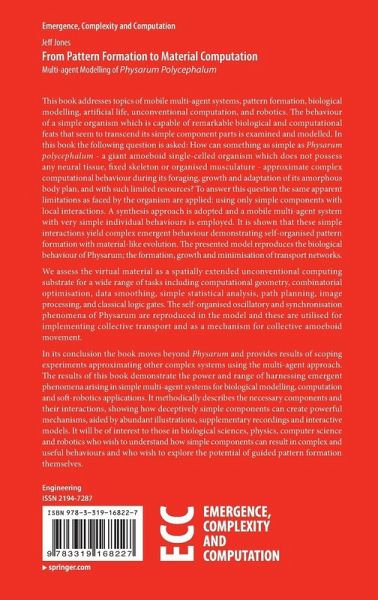 In its conclusion the book moves beyond Physarum and provides results of scoping experiments approximating other complex systems using the multi-agent approach. The results of this book demonstrate the power and range of harnessing emergent phenomena arising in simple multi-agent systems for biological modelling, computation and soft-robotics applications. It methodically describes the necessary components and their interactions, showing how deceptively simple components can create powerful mechanisms, aided by abundant illustrations, supplementary recordings and interactive models. It will be of interest to those in biological sciences, physics, computer science and robotics who wish to understand how simple components can result in complex and useful behaviours and who wish explore the potential of guided pattern formation themselves.