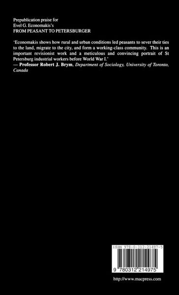 Economakis analyses the processes of proletarianization and urbanization undergone by St. Petersburg's industrial working class from its inception in the early nineteenth century up until 1914. Attention is given to the severing of workers' ties to the village and the land. The book examines local conditions in sending areas and traces the history of factory work in St. Petersburg by workers from different provinces. Economakis finds that a majority of the factory workforce was objectively proletarianized by 1914.