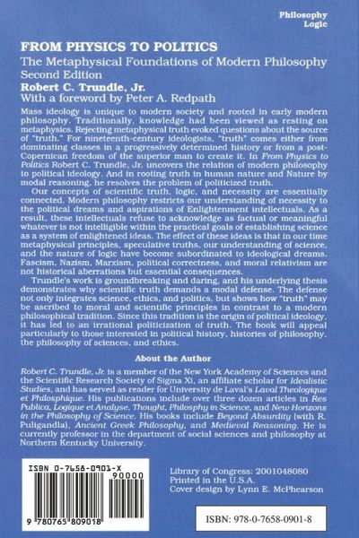 Mass ideology is unique to modern society and rooted in early modern philosophy. Traditionally, knowledge had been viewed as resting on metaphysics. Rejecting metaphysical truth evoked questions about the source of "truth." For nineteenth-century ideologists, "truth" comes either from dominating classes in a progressively determined history or from a post-Copernican freedom of the superior man to create it. In From Physics to Politics Robert C. Trundle, Jr. uncovers the relation of modern philosophy to political ideology. And in rooting truth in human nature and Nature by modal reasoning, he resolves the problem of politicized truth.Our concepts of scientific truth, logic, and necessity are essentially connected. Modern philosophy restricts our understanding of necessity to the political dreams and aspirations of Enlightenment intellectuals. As a result, these intellectuals refuse to acknowledge as factual or meaningful whatever is not intelligible within the practical goals of establishing science as a system of enlightened ideas. The effect of these ideas is that in our time metaphysical principles, speculative truths, our understanding of science, and the nature of logic have become subordinated to ideological dreams. Fascism, Nazism, Marxism, political correctness, and moral relativism are not historical aberrations but essential consequences.Trundle's work is groundbreaking and daring, and his underlying thesis demonstrates why scientific truth demands a modal defense. The defense not only integrates science, ethics, and politics, but shows how "truth" may be ascribed to moral and scientific principles in contrast to a modern philosophical tradition. Since this tradition is the origin of political ideology, it has led to an irrational politicization of truth. The book will appeal particularly to those interested in political history, histories of philosophy, the philosophy of sciences, and ethics.