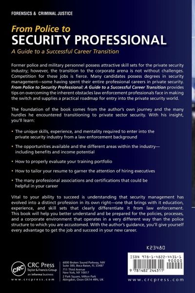 Former police and military personnel possess attractive skill sets for the private security industry; however, the transition to the corporate arena is not without challenges. Competition for these jobs is fierce. Many candidates possess degrees in security management-some having spent their entire professional careers in private security. From Police to Security Professional: A Guide to a Successful Career Transition provides tips on overcoming the inherent obstacles law enforcement professionals face in making the switch and supplies a practical roadmap for entry into the private security world. The foundation of the book comes from the author's own journey and the many hurdles he encountered transitioning to private sector security. With his help, you'll learn: The unique skills, experience, and mentality required to enter into the private security industry from a law enforcement background The opportunities available and the different areas within the industry-including benefits and income potential How to properly evaluate your training portfolio How to tailor your resume to garner the attention of hiring executives The many professional associations and certifications that could be helpful in your career Vital to your ability to succeed is understanding that security management has evolved into a distinct profession in its own right-one that brings with it different education, experience, and skill sets that clearly differentiate it from law enforcement. This book will help you better understand and be prepared for the policies, processes, and a corporate environment that operates in a very different way than the police structure to which you are accustomed. With the author's help, you'll give yourself every advantage to get the job and succeed in your new career.