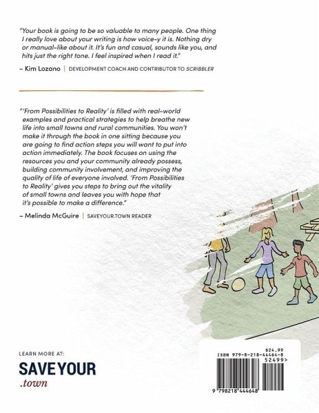 From Possibilities to Reality: Save Your Small Town with these Uniquely Do-able Ideas, Projects, and Success Stories Deb Brown cofounder of SaveYour.Town author first edition August 2024 publication Imprint/Publisher Debra Brown Copyright License All Rights Reserved - Standard Copyright License Copyright Holder Debra Brown Copyright Year 2024 ISBN 979-8-218-44464-8