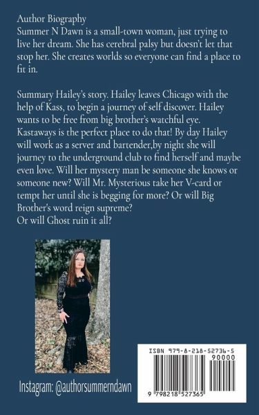Hailey's story. Hailey leaves Chicago with the help of Kass to begin a journey of self-discovery. Hailey wants to be free from Big Brother's watchful eye. Kastaways is the perfect place to do that! By day, Hailey will work as a server and bartender; by night, she will journey to the underground club to find herself and maybe even love. Will her mystery man be someone she knows or someone new? Will Mr. Phantom take her V-card or tempt her until she begs for more? Will they get a happily ever after? Or will Big Brother's word reign supreme? Or will Ghost ruin it all?