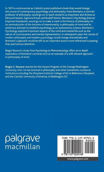 Although highly influential, Brentano's doctrines from Psychology from an Empirical Standpoint were taken up and changed by his students and subsequent thinkers. Tassone's study of this important text offers readers a better understanding of PES and outlines its ongoing relevance for contemporary philosophy of mind.