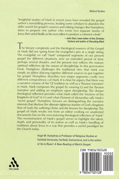 The literary complexity and the theological nuances of the Gospel of Mark did not spring from the evangelist’s pen at a single sitting. The evangelist we call “Mark” composed segments of our present gospel for different situations, over an extended period of time, perhaps several decades, and that the present text reflects the mature, spiritual reflection on the nature of discipleship. In this provocative book, Humphrey challenges the traditional view that Mark was simply an editor drawing together different sources to put together his gospel. In order to establish this thesis about the manner in which Mark was composed, Humphrey first reviews the patristic witness to the gospel, pointing out the ambiguities and tensions between them. He gives particular emphasis to Clement of Alexandria, who specifically indicates that Mark wrote several different works. Following that chapter, Humphrey describes two major segments-really two different compositions-of Mark. It is clear, he argues, that there was a narrative version of the “Q” tradition, that collection of sayings that has been viewed as an oral tradition, as well as a “Passion Narrative” in Mark. A third stage of the composition of Mark occurs when Q and the Passion Narrative are blended and an emphasis upon discipleship is interwoven into the text. The deeper theological reflection reflected in this third development yielded what Mark called the “mystery of the Kingdom of God” (4:11) and what Clement of Alexandria calls Mark’s “secret gospel.” Humphrey focuses on distinguishing the narrative interests that disclose the ultimate righteous teacher of God’s Kingdom (Son of God), the suffering Christ, and the lessons for discipleship. The gospel of Mark results not from an editor working on unattested documents but on the ever-maturing theological reflection of “Mark.” Humphrey’s study has two purposes. If theology is the process of bringing faith to expression, then that process is illustrated in the composition history of Mark’s gospel. Each stage of composition expresses an aspect of the early Christian faith response to God’s having raised Jesus from the dead. Second, this reconstruction of Mark’s gospel serves to highlight the talent and depth and personality of its author as well as to point out that the handling of traditions about Jesus in this way provides a useful paradigm for the Church today.