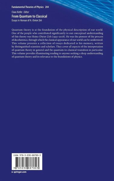 H. Dieter Zeh and the History of the Foundations of Quantum Mechanics.- Emergence of the Classical World from within our Quantum Universe.- Decoherence: From Interpretation to Experiment.- Experimental decoherence in molecule interferometry.- When Zeh meets Feynman: how to avoid the appearance of a classical world in gravity experiments.- Preferred basis, decoherence and the quantum state of the Universe.- Wave Function First - H.D. Zeh and the Foundations of Physics.- Geometrodynamics as Functionalism about Time.- Quantum Hierarchical Systems: Fluctuation Force by Coarse-Graining, Decoherence by Correlation Noise.- Decoherence and the puzzle of quantum Brownian motion in a gas.- On the statistical viewpoint concerning the second law of thermodynamics - a reminder on the Ehrenfests' urn model.- Explanation, the Progress of Physical Theories and Computer Simulations.- Searching for Dieter Zeh.