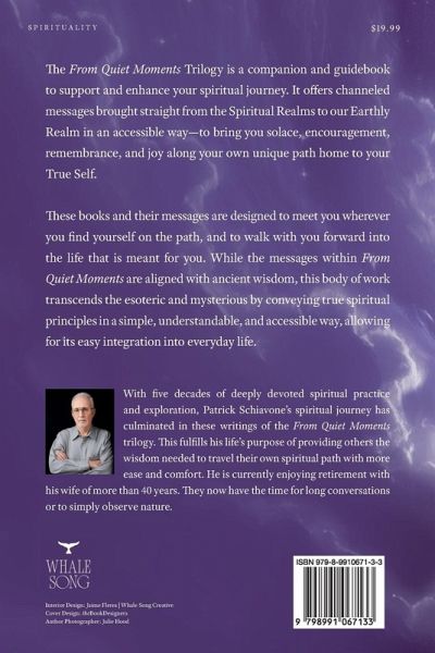 The From Quiet Moments Trilogy is a companion and guidebook to support and enhance your spiritual journey. It offers channeled messages brought straight from the Spiritual Realms to our Earthly Realm in an accessible way-to bring you solace, encouragement, remembrance, and joy along your own unique path home to your True Self. These books and their messages are designed to meet you wherever you find yourself on the path, and to walk with you forward into the life that is meant for you. While the messages within From Quiet Moments are aligned with ancient wisdom, this body of work transcends the esoteric and mysterious by conveying true spiritual principles in a simple, understandable, and accessible way, allowing for its easy integration into everyday life. Book III's theme of Spiritual Action is where we are awakened, know our True Self and are now equipped to move through and overcome the obstacles the physical world puts before us. It reveals to us that, as a spiritual being in a physical world, we have no limitations. Thus, we can move through any ego thinking and drop the appearance of any restrictions that seemingly hold us from expressing our True Self. This expression brings us fulfillment and subsequently joy. The tone of Book III is authoritative, since it is in direct conversation with God, Himself. While this book will support any seeker, it is intended most for the Devoted Spiritual Seeker, who has broken free of the confines of past beliefs and created their own spiritual philosophy. They follow their inner voice using their talents and abilities while expressing their true nature. Their life has meaning. They envision a fulfilling life as realizing their union with life itself. They are devoted and willing to be who they really are and to "push forward" the good within themselves out into the world.