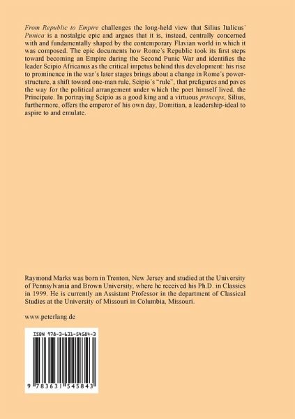 From Republic to Empire challenges the long-held view that Silius Italicus' Punica is a nostalgic epic and argues that it is, instead, centrally concerned with and fundamentally shaped by the contemporary Flavian world in which it was composed. The epic documents how Rome's Republic took its first steps toward becoming an Empire during the Second Punic War and identifies the leader Scipio Africanus as the critical impetus behind this development: his rise to prominence in the war's later stages brings about a change in Rome's power-structure, a shift toward one-man rule, Scipio's «rule», that prefigures and paves the way for the political arrangement under which the poet himself lived, the Principate. In portraying Scipio as a good king and a virtuous princeps, Silius, furthermore, offers the emperor of his own day, Domitian, a leadership-ideal to aspire to and emulate.