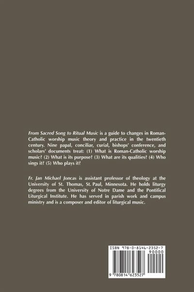 From Sacred Song to Ritual Music is a guide to changes in Roman Catholic worship music theory and practice in the twentieth century. Nine papal, conciliar, curial, bishops' conference, and scholars' documents treat: 1) What is Roman Catholic worship music? 2) What is its purpose? 3) What are its qualities? 4) Who sings it? 5) Who plays it?