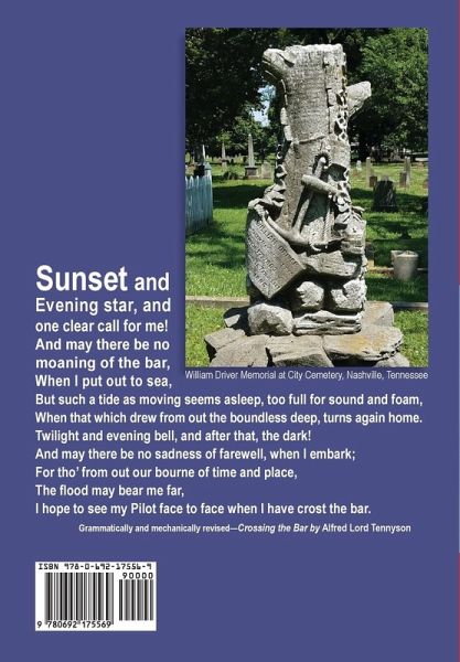 This story is about Captain William Driver as told by his Great-Great-grandson, Jack Benz, in collaboration with other writers and advisers. The text is strikingly enhanced by over 200 professionally crafted images and by an appendix of founding father documents. The resources substantially came from Benz’s collection of items up to 200 year’s old. Some episodes are in print for the first time. Captain Driver was born in Salem, MA in 1803 to puritan parents within a culture and heritage of seafarers. His homes were ports and vessels that sailed the vast oceans in the early 19th century. It is a true story of adventure, daring, high drama, heroism, patriotism, and incomparable public service on behalf of the helpless. Young William was gifted beyond his year’s as evidenced by his scholarliness in the Salem’s famed Hacker school, and at 14, his hiring on a trading vessel. This background immersed him in ventures around the world, seeking fame and fortune trading rare spices and other prized commodities. By 21, he captained ships that circled the world on odysseys that exposed him to numerous dangerous encounters at sea, including horrific storms and turbulence with waves over 50 feet high. Ashore, he confronted life-changing events in the lands of cannibals, giants, pirates, savages, and scantily clad island women. In a famous episode, he rescued families of survivors of the original mutineers on HMS ship Bounty and delivered them to their adopted home on Pitcairn Island. This venture was part and parcel in numerous movies, including one receiving an academy award for the best picture of the year and touted best nautical film of all times. Captain Driver retired young and wealthy and moved to Nashville, TN. with his third wife. Two others predeceased him, and the third is shocking. In this city on the rocks, he was an activist Union sympathizer generally shunned by the largely Confederate citizenry at a time Civil War was imminent. As a staunch abolitionist living where the city even owned slaves, he was a misfit. He and his home place often were vilified because of his views, crusty manner, and irritating practice of displaying Old Glory, his ship's legendary flag. The residents viewed him as a cantankerous rabble-rouser, always rocking the boat and supporting unpopular causes on behalf of the downtrodden, exploited, and uneducated-mainly Native Americans, Negroes, women, the sick and infirmed. He was their defender, friend, spokesman, and hero. Driver was active in civic affairs, once running for mayor and later holding several governmental offices. Among his significant civic achievements were helping facilitate the establishment of public education in Nashville, and as provost, regulating prostitution and disease control. The Captain routinely picked fights over issues with the churches, government, and establishments in general; even with some in his family members, their discord led to estrangement. His uniqueness is best described in his patriotism evidenced by his fierce defense, respect, and reverence for Old Glory. He had observed and experienced its influence around the world—feared, honored, and respected like no other country's flag. He proclaimed its majesty to be so profound it even waves to defend the rights of those whose actions and speech are cowardly despicable. As a bonus, the book offers ancillary educational information about world cultures, history, geography, navigation, philosophy, religion, and scienc