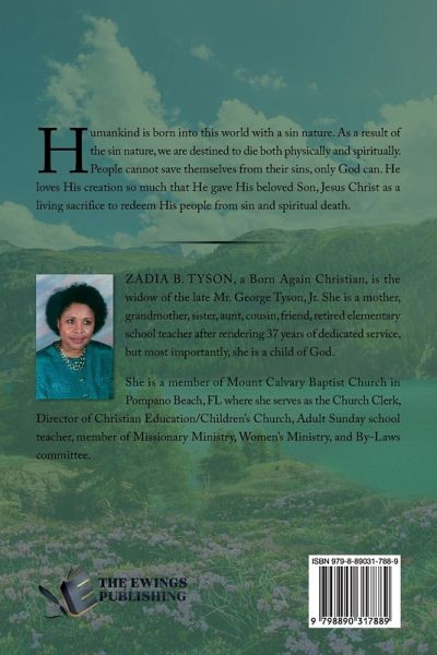 ZADIA B. TYSON, a Born Again Christian, is the widow of the late Mr. George Tyson, Jr. She is a mother, grandmother, sister, aunt, cousin, friend, retired elementary school teacher after rendering 37 years of dedicated service, but most importantly, she is a child of God. She is a member of Mount Calvary Baptist Church in Pompano Beach, FL where she serves as the Church Clerk, Director of Christian Education/Children's Church, Adult Sunday school teacher, member of Missionary Ministry, Women's Ministry, and By-Laws committee.