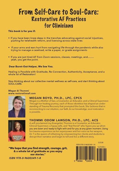 THIS BOOK IS FOR YOU... If you have been knee-deep in the trenches advocating against social injustices, pushing for telehealth reform, and licensing across state lines If your arms and ears hurt from navigating life through the pandemic while also trying to manage a caseload, write a paper, or grade assignments If you are just tired AF from Zoom sessions, classes, meetings, and....yea, you get the point.