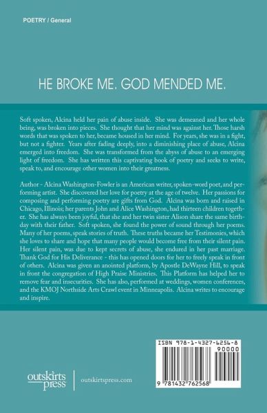 Soft spoken, Alcina held her pain of abuse inside. She was demeaned and her whole being, was broken into pieces. She thought that her mind was also against her. Those harsh words that were spoken to her - became housed in her mind. For years, she was in a fight, but not a fighter. Years after fading deeply, into a diminishing place of abuse, Alcina emerged into freedom. She was transformed from the abyss of abuse to an emerging light of freedom. Alcina has written this captivating book of poetry, which seeks to encourage other women into their greatness.