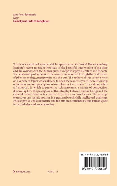 INTRODUCTION.- Some Remarks About Ontopoiesis as New Metaphysics; Francesco Totaro.- SECTION I; On Communicative Being in Postmodern Times; Daniela Verducci.- The Logos of Life: Autopoiesis, Ontopoiesis and Meta-Ontopoiesis; Elisa Tona.- Geometrical Representation of Anna-Teresa Tymieniecka's Phenomenology of Life; Martha Cecilia Suarez Jimenz.- SECTION II; Celestial Experience of Life; Alira Ashvo-Munoz.- On the Eternal Recurrence as the Ground of Holiness in the Light of Philip Groning's The Great Silence; Victor G. Rivas Lopez.- SECTION III.- Reflecting the Sky Experience in a Japanese Garden; Lena Hopsch.- A Meditation on the Oddness of Christian Religiosity and Conception of Love Through Bergman's Winter Light; Victor G. Rivas Lopez.- The Moon as an Artistic Focus of the Illumination of Consciousness; Bruce Ross.- The Sky's the Limit: Art and the Idea of Infinity; Brian Grassom.- From the Infinitesimal to the Infinite: Rolano Briseño Celestial Tablescapes; Scott A. Sherer.- SECTION IV; Earth and Skies as Conflicting Complementary or Supplementary Dramas in the Eternal War between Epistemology and Ethics; Imafedia Okhamafe.- Master and Emissary - The Drama of Dark Energy in Literature and Life; Rebecca Painter.- More than a Common Pest: The Fly as Non-Human Companion in Emily Dickinson's "I Heard a Fly Buzz when I Died" and Samuel Beckett's Company; Mary Catanzaro.- Flutter of a Butterfly; Alira Ashvo-Munoz.- SECTION V.- Drama Between Earth and Skies: Nietzsche, Saint-John Perse, Yves Bonnefoy; Victor Kocay.- Phenomenology is a Humanism: Husserl's Hermeneutical-Historical Struggle to Determine the Genuine Meaning of Human Existence in The Crisis of the European Sciences and Transcendental Phenomenology; George Heffernan.- Milton's Sky-Earth Alchemy and Heidegger's Earth-Sky Continuum - A Comparative Analysis; Bernard Micallef.- Forces of the Cosmos in Alam Minangkabau: A Phenomenological Perspective; A.L. Samian.- Language,Meaning, and Culture: Research in the Humanities; Lawrence Kimmel.- SECTION VI.- Ringing Kimiyo Murata-Soraci On the Mystery of Sky and Earth in Camus's The Exile and the Kingdom; Victor G. Rivas Lopez.- Gene Savoy's Project X and Expanding the Mind Through the Sun and Astral Bodies; Bruce Ross.