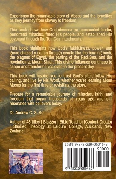 Experience the remarkable story of Moses and the Israelites as they journey from slavery to freedom. This book shows how God chooses an unexpected leader, performed miracles, freed His people, and established His covenant through the Ten Commandments. This book highlights how God's faithfulness, power, and grace shaped a nation through events like the burning bush, the plagues of Egypt, the parting of the Red Sea, and the revelation at Mount Sinai. This divine influence continues to shape and transform lives even in the present day. Ideal for personal reflection, Bible study groups, or church teachings, this book equips you to: Grasp the pivotal events of the Exodus narrative. Explore God's miracles through a rejuvenated lens. Absorb timeless principles of faith, leadership, and obedience. Contemplate the relevance of the Ten Commandments in our contemporary world. Recognize how the God who delivered Israel is still a source of liberation for His people today. This book will inspire you to trust God's plan, follow His calling, and live by His Word, whether you're learning about Moses for the first time or revisiting the story. Prepare for a remarkable journey of miracles, faith, and freedom that began thousands of years ago and still resonates with believers today.