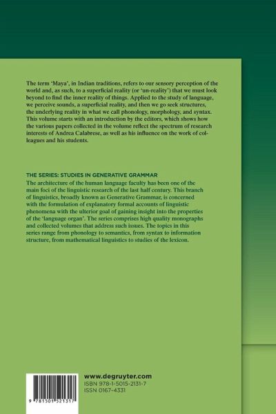 The term 'Maya', in Indian traditions, refers to our sensory perception of the world and, as such, to a superficial reality (or 'un-reality') that we must look beyond to find the inner reality of things. Applied to the study of language, we perceive sounds, a superficial reality, and then we seek structures, the underlying reality in what we call phonology, morphology, and syntax. This volume starts with an introduction by the editors, which shows how the various papers contained in the volume reflect the spectrum of research interests of Andrea Calabrese, as well as his influence on the work of colleagues and his students. Contributors, united in their search for the abstract structures that underlie the appearances of languages include linguists such as Adriana Belletti, Paola Benincà, Jonathan Bobaljik, Gugliemo Cinque, David Embick, Mirko Grimaldi, Harry van der Hulst, Michael Kenstowicz, Maria Rita Manzini, Andrew Nevins, Elizabeth Pyatt, Luigi Rizzi, Leonardo Savoia, Laura Vanelli, Bert Vaux, Susi Wurmbrand, as well as a few junior researchers including Mariachiara Berizzi, Giuliano Bocci, Stefano Canalis, Silvio Cruschina, Irina Monich, Beata Moskal, Diego Pescarini, Joseph Perry, Roberto Petrosino, and Kobey Schwayder.
