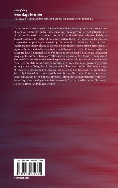 Chinese martial arts cinema is held to be a synthesis drawing on artistic conventions of traditional Chinese theatre. Film sound and music perform as the legitimate heirs of some of the aesthetic ideas and norms of traditional Chinese theatre. This book critically examines the history of this under-explored field of inquiry from a theoretically comparative perspective, demonstrating that the musical codes drawn from traditional theatre are a constantly changing component integral to Chinese martial arts cinema. It explores the interaction between traditional Chinese theatre and Chinese martial arts cinema in how the musical codes of the former have shaped the aesthetics of the latter uniquely. This departs from conventional existing studies that focus on "adaptation." The book's historical and theoretical approach connects film, theatre and music, and re-defines the status of distinctive domains of filmic expression, grounding theatre as the pivot - or "hinge" - of film aesthetics. Thebook proffers this unique angle of research to rethink and re-imagine film sound and audiovisual synchronisation. Primarily intended for scholars in Chinese cinema, film music, Chinese theatre and visual culture, this monograph also presents introductory and comprehensive material for undergraduate and graduate-level courses in film and media studies, film music, Chinese cinema, and Chinese theatre.