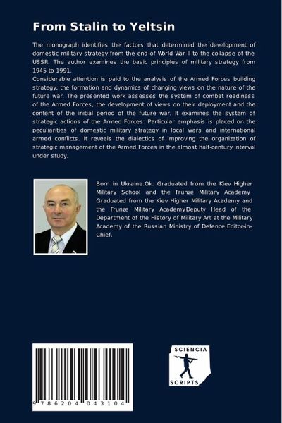 The monograph identifies the factors that determined the development of domestic military strategy from the end of World War II to the collapse of the USSR. The author examines the basic principles of military strategy from 1945 to 1991.Considerable attention is paid to the analysis of the Armed Forces building strategy, the formation and dynamics of changing views on the nature of the future war. The presented work assesses the system of combat readiness of the Armed Forces, the development of views on their deployment and the content of the initial period of the future war. It examines the system of strategic actions of the Armed Forces. Particular emphasis is placed on the peculiarities of domestic military strategy in local wars and international armed conflicts. It reveals the dialectics of improving the organization of strategic management of the Armed Forces in the almost half-century interval under study.