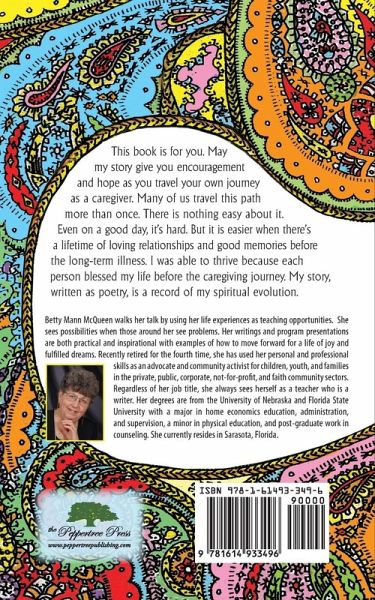 This book is for you. May my story give you encouragement and hope as you travel your own journey as a caregiver. Many of us travel this path more than once. There is nothing easy about it. Even on a good day, it's hard. But it is easier when there's a lifetime of loving relationships and good memories before the long-term illness. I was able to thrive because each person blessed my life before the caregiving journey. My story, written as poetry is a record of my spiritual evolution.