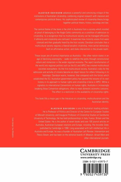 List of figures List of tables Acknowledgments Abbreviations Introduction Part I. From Subject to Citizen 1901-1996: 1. Civis Romanus Sum 2. From subject to citizen I: to 1948 3. Nationality and the citizen II: 1948-1986 4. From subject to citizen III: 1983-1996 Part II. Discourses of Exclusion: 5. Discourses of exclusion, silencing the migrant voice 6. Aborigines and citizenship: discourses of exclusion Part III. The Active Citizen and Beyond: 7. The active citizen and direct democracy in Australia Conclusion Notes Select bibliography Index.