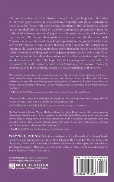 The powers of death are closer than we thought. Their perils appear in the forms of increased gun violence, racism, economic disparity, and global warming, to name but a few. Faced with these threats, Christians in this self-absorbed culture tend to use their faith as a kind of palliative comfort that protects them from the truths of what these powers are doing to us as a human community, and the sufferings they are inflicting on others, particularly the poor and the disenfranchised. Moreover, it is used to shield them from responding to the gospel's call to leave survival for vocation. Using Luther's theology of the cross and the instruction he imparts in his Large Catechism, this book asserts that in the face of the sufferings in which we are situated, the gospel news of Jesus's resurrection is a call to stand in its hope and power to resist these devastations and the dehumanization, exploitation, and domination they inflict. The hope of God's life-giving creativity in the face of the powers of death is given witness when Christians leave survival modes of existence to be in their baptismal vocation of loving neighbors as themselves.