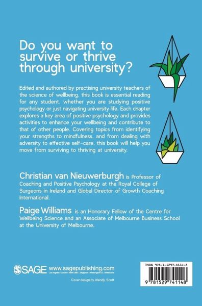 Edited and authored by practising university teachers of the science of wellbeing, this textbook is essential reading for any student, whether you are studying positive psychology or just navigating university life. Each chapter explores a key area of positive psychology and provides activities to enhance your wellbeing and contribute to that of other people. Covering topics from identifying your strengths to mindfulness, and from dealing with adversity to the importance of play, this book will help you move from surviving to thriving at university.
