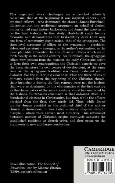 This important work challenges an entrenched scholarly consensus, that at the beginning it was inspired leaders - not ordained officers - who dominated the church. James Burtchaell illustrates that the traditional argument on behalf of clerical authority had read history backwards, and found the apostles to be the first bishops. In this study, Burtchaell reads history forwards, and demonstrates that first century Jews knew only one form of community organization, that of the synagogue. The three-level structure of offices in the synagogue - president, elders, and assistant - emerges, in the author's estimation, as the most plausible antecedent for the Christian offices which stand forth clearly in the second century. Burtchaell's conclusion is that ordained office is a foundational element in Christianity, but that, while the officers presided from the first, they rarely led. Thus, while Jesus' brother James presided as the ordained chief of the mother church in Jerusalem, it was Peter - Jesus' inspired veteran disciple - whose voice carried most authority. This revisionist historical account of Christian origins creatively subverts the established positions on church order, and thus opens up the arguments to new and larger conclusions.