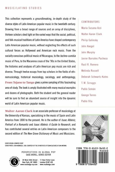 Preface: Of Borders and Boundaries Walter Aaron Clark 1. "Give Your Body Joy, Macarena": Aspects of U.S. Participation in the Dance Craze of the 90s MelindaRussell 2. Music and Place in the Brazilian Popular Imagination: The Interplay of Local and Global in the Mangue Bit Movement of Recife, Pernambuco, Brazil PhilipA. Galinsky 3. The Tango, Astor Piazzola, and Peronism (1940s-1955) María Susana Azzi 4. Crossing Borders: Mexican Popular Music in the United States JohnKoegel 5. Viral Creativity: A Memetic approach to the Music of André Abujamra and Karnak John Murphy 6. The Popularized Gaucho Image as a Source of Argentine Classical Music, 1880-1920 Deborah Schwartz-Kates 7. A Chicano in a Cuban Band: Okan Ise and Songo in Los Angeles javier Pacheco 8. The Bolero Romántico: From Cuban Dance to International Popular Song Geogre Torres 9. Iron Lion Zion: Biblical References in the Lyrics of Bob Marley David Moskowitz 10. Volcán + canto = Volcanto: Central American Popular Music in the 1970s and 1980s T. M. Scruggs 11. Rock Chabón: The Contemporary National Rock of Argentina Pablo Vila and Pablo Seman 12. Chica Music: The Andean Cumbia and Urban Popular Culture in Lima, Peru Raúl Romero 13. Doing the Samba on Sunset Boulevard: Carmen Miranda and the Hollywoodization of Latin American Music Walter AaronClark About the Contributors